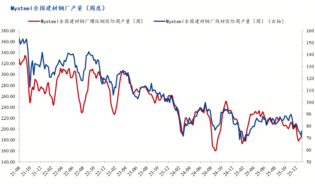 2、建筑鋼材產(chǎn)量震蕩小幅回落