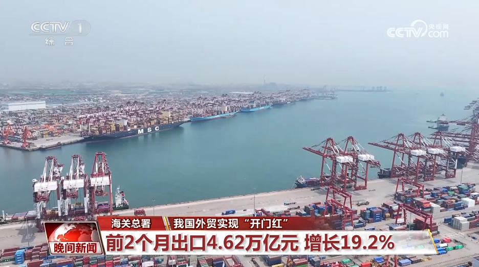 央視網(wǎng)消息:海關(guān)總署3月10日發(fā)布外貿(mào)數(shù)據(jù),今年前2個(gè)月,我國(guó)貨物貿(mào)易進(jìn)出口同比增長(zhǎng)18.3%,外貿(mào)開局良好。