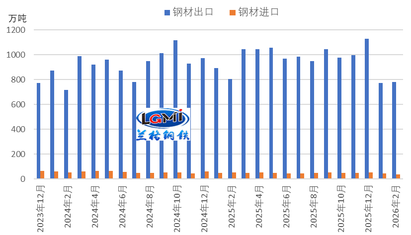 回顧1-2月鋼材出口下滑的核心原因,主要是2026年1月1日起實(shí)施的鋼鐵出口許可證新政,導(dǎo)致企業(yè)訂單縮減、交付節(jié)奏延后,我國鋼材出口階段性承壓回落。