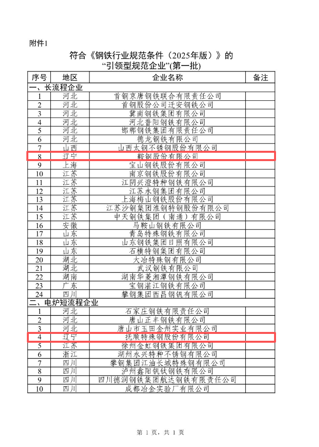 2.符合《鋼鐵行業(yè)規(guī)范條件(2025年版)》的“規(guī)范企業(yè)”(第一批)