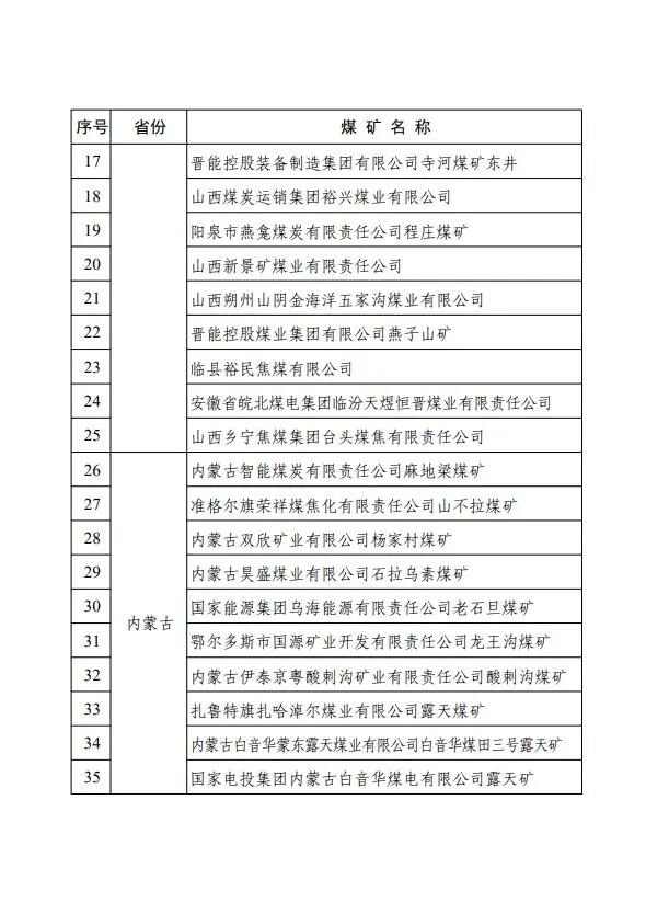 根據(jù)中央層面達(dá)標(biāo)活動(dòng)清單,按照《煤礦安全生產(chǎn)標(biāo)準(zhǔn)化管理體系考核定級(jí)辦法》(礦安〔2024〕109號(hào))等規(guī)定,經(jīng)資料審查、現(xiàn)場檢查抽查、網(wǎng)上公示,認(rèn)定山西朔州平魯區(qū)龍礦大恒煤業(yè)有限公司等52處煤礦(詳見附件)為煤礦安全生產(chǎn)標(biāo)準(zhǔn)化一級(jí)企業(yè),現(xiàn)予以公告。本認(rèn)定自公告之日起生效,有效期為3年。