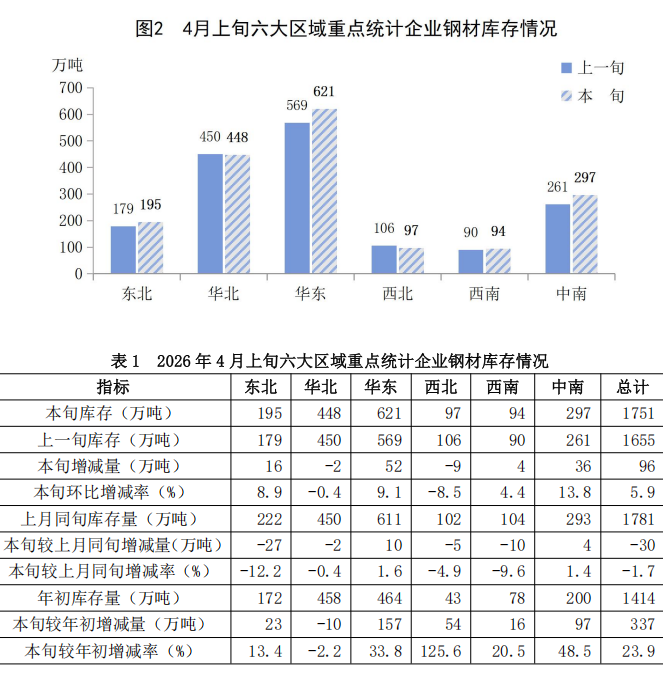 4月上旬重點(diǎn)統(tǒng)計(jì)企業(yè)鋼材庫存旬報(bào)?