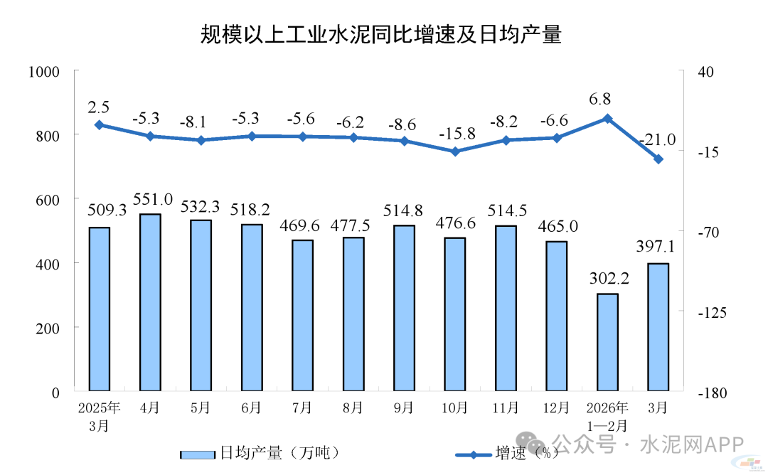 3月份,全國水泥產(chǎn)量12310萬噸,同比下降21%;一季度全國水泥產(chǎn)量30102萬噸,同比下降7.1%。
