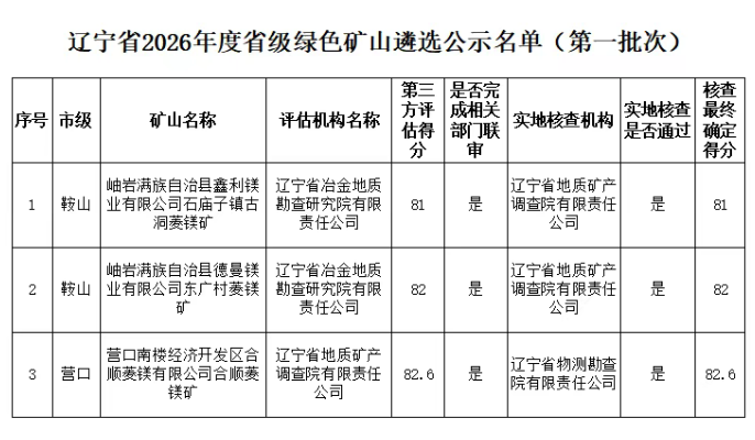 附件:遼寧省2026年度省級綠色礦山遴選公示名單(第一批次)