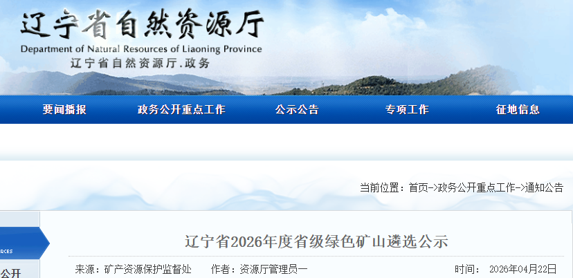 按照《關(guān)于進(jìn)一步加強(qiáng)遼寧省綠色礦山建設(shè)的通知(遼自然資規(guī)〔2025〕4號)》中關(guān)于省級綠色礦山遴選工作的相關(guān)要求,現(xiàn)有3家礦山企業(yè)通過了市級第三方評估、部門聯(lián)審、實(shí)地核查等程序已達(dá)到了遴選標(biāo)準(zhǔn),依據(jù)遴選程序向社會公示5個工作日,公示期內(nèi)如有異議,舉報人需實(shí)名通過電話或來訪等形式向我廳反映。