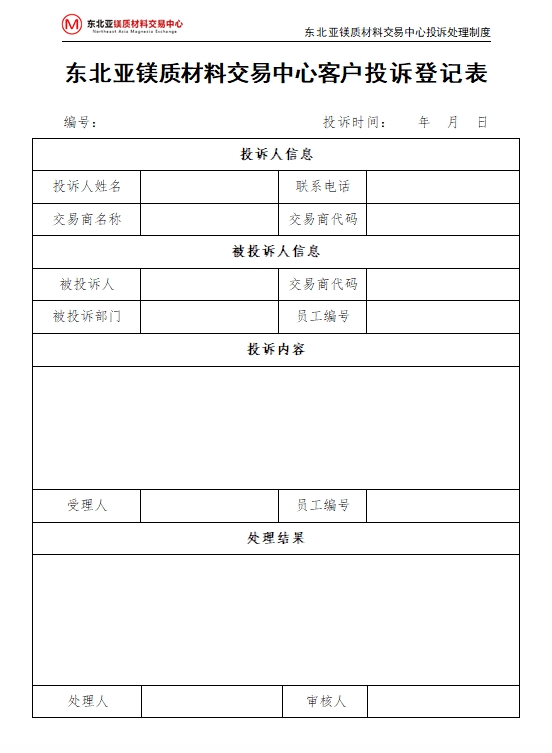 第一條 為有效管理東北亞鎂質(zhì)材料交易中心(以下簡(jiǎn)稱“交易中心”)交易商投訴事宜,特制定本制度。